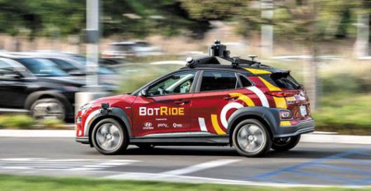 포니에이아이가 2019년 현대자동차 등과 함께 시범 운영한 승차 공유 서비스 '봇라이드(BotRide)'의 운행 차량./현대자동차
