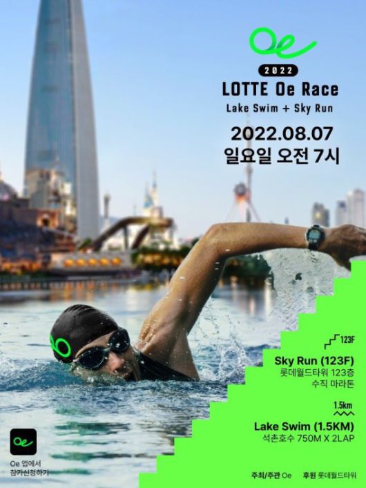 화석연료를 사용하지 않는 스포츠 이벤트 플랫폼 Oe(One Earth)가 주최하는 Oe Race는 아쿠아슬론 대회로, 철인 3종으로 알려진 트라이애슬론에서 사이클을 제외한 두 종목으로 구성된다. 석촌호수 수영(1.5km)과 롯데월드타워 123층 2917개 계단을 오르는 수직 마라톤 스카이런(SKY RUN)으로 진행되며, 수영과 계단 오르기로 이뤄진 코스는 전 세계 최초다.