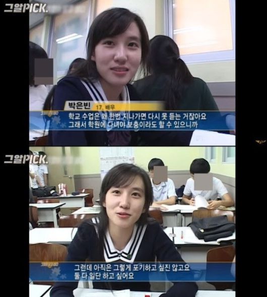 박은빈은 “학교 수업은 왜 한번 지나가면 다시 못 듣는 거잖아요. 그래서 학원에 다녀야 보충이라도 할 수 있으니까”라며 “공부 때문에 제가 좋아하는 거를 못 하게 된다면 아무래도 한쪽은 좀 소홀히 해야겠죠. 근데 아직은 그렇게 포기하고 싶진 않고요. 둘 다 하고 싶어요”라고 말했다.