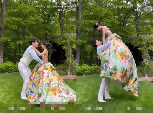 공개된 영상 속에는 아야네, 이지훈이 촬영에 임하고 있는 모습이 담겼다. 선남선녀 부부의 자태가 눈길을 모으는 가운데 이지훈은 아야네를 가볍게 들어올리고 있어 감탄을 더한다. 최근 40kg대 몸무게를 공개했던 아야네의 마른 몸을 실감할 수 있는 대목.