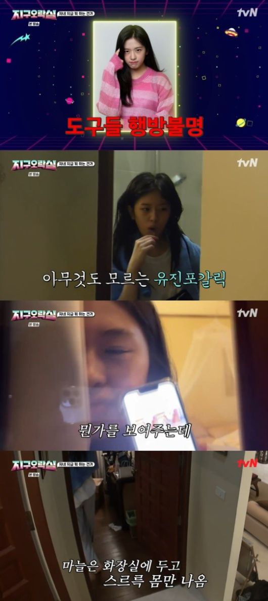 29일 방송된 tvN '뿅뿅 지구오락실'에서는 이상 미션에서 마늘 절구를 잃어버린 안유진의 모습이그려졌다.