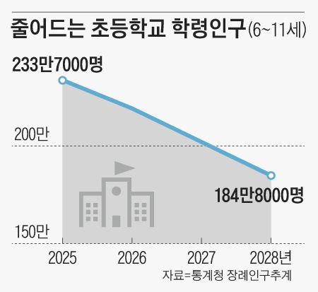 출생아가 전부 취학한다고 가정하고 교육부 안을 적용하면 초등학교 입학생은 2024년 35만7000여 명에서 2025년 40만9000여 명으로 5만여 명 늘어난다. 그러다 2026년엔 36만명, 2027년엔 33만명대로 준다. 출생 월(月)을 조정하면 입학자 수가 급증하는 상황은 막을 수 있다.