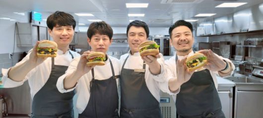 야심작인 그릴드비프버거 탄생의 중심에는 김광묵 맘스터치 제품혁신센터장, 최영진 팀장, 원종운 과장, 추연경 대리가 있다. 이들은 한국, 프랑스, 미국 유명 호텔 및 미쉐린 등급 레스토랑 출신으로 지난 1년간 끊임없는 아이디어 회의와 레시피 테스트 끝에 신제품을 세상에 내놓았다. ‘싸이버거의 영광 재현’이라는 부담스러운 미션 속에서도 “충실한 기본의 맛”을 살리는 데 공을 들였다는 개발의 주역들을 27일 서울 천호동 맘스터치 본사 제품혁신센터에서 만났다.