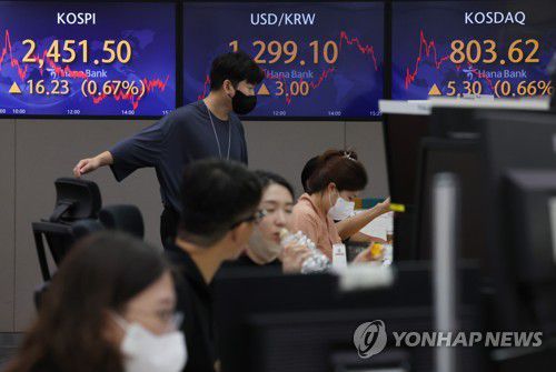 코스피 2,450선 회복…코스닥도 800선 복귀 |