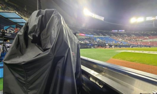 29일 서울 잠실야구장에서 열린 2022 KBO 리그 KT위즈 대 LG트윈스 경기, 5이닝 이후 중계차량 문제로 중계 시스템이 작동되지 않아 카메라가 베일에 덮여 있다. 2022.07.29. 서울=뉴시스 |