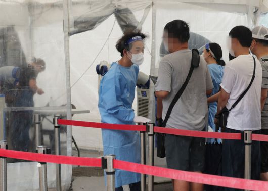 코로나19 재유행이 이어지는 가운데 31일 오후 서울역광장에 마련된 임시선별검사소에서 시민들이 검사를 받기 위해 안내를 받고 있다. 연합뉴스 |