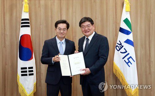 지난달 28일 김용진 경제부지사에게 임명장 수여하는 김동연 지사 |