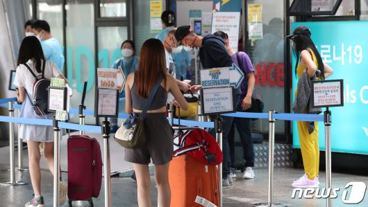 (인천공항=뉴스1) 임세영 기자 = 1일 인천국제공항 1터미널 신종 코로나바이러스 감염증(코로나19) 검사센터에서 해외 입국자들이 검사를 받기 위해 기다리고 있다. 질병관리청 중앙방역대책본부(방대본)는 이날 0시 기준 신종 코로나바이러스 감염증(코로나19) 신규 확진자가 4만4689명 발생했다고 밝혔다. 이로써 누적 확진자는 1982만739명이 됐다. 국내발생 4만4253명, 해외유입은 436명이다. 해외유입 확진자는 지난 24일 이후 300~500명대에 이르는 많은 수를 기록 중이다. 질병청은 ‘켄타우로스 변이’로 불리는 BA.2.75 변이 감염 환자가 3명 추가됐고 모두 해외 유입이라고 지난 30일 밝혔다. 이로써 BA.2.75 변이 감염자는 모두 7명이 됐다. 2022.8.1/뉴스1