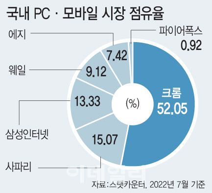 [이데일리 김국배 기자] 구글의 크롬이 국내 인터넷 웹브라우저 시장을 장악한 가운데 네이버(035420)가 마이크로소프트(MS) 익스플로러(IE)의 빈자리를 노리고 있다.