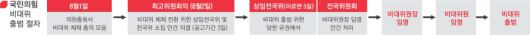 앞으로 60여명으로 구성된 상임전국위에서 당이 비대위로 전환할 비상상황임을 확인받고, 수백명이 참여하는 전국위에서 당헌 개정과 비대위원장 의결이 이뤄지게 된다. 국민의힘은 속도전을 통해 이번주 윤석열 대통령 휴가가 끝나기 전에 비대위 체제로 전환하고 싶어 한다. 하지만 여름휴가철이고 수백명에게 안건을 알려야 하는 등 준비 기간을 고려할 때 전국위는 다음주에나 가능할 것으로 보인다. 일단 이번주 상임전국위를 열어 비대위 전환의 정당성과 근거를 먼저 확보할 가능성이 있다.