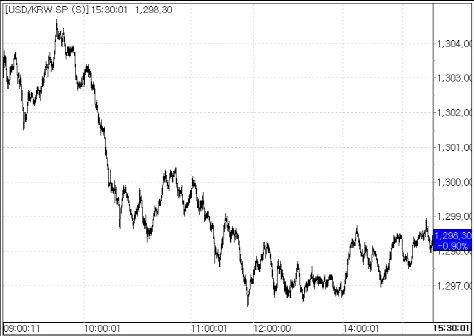 이날 환율은 역외 환율 하락을 따라 6.6원 내린 1303.5원에 시작한 뒤 7원 안팎의 하락폭을 보이다가 오전 중 낙폭을 10원 이상 확대하면서 1290원대로 떨어졌다. 장중엔 1286.1원까지 하락하기도 했다. 전날 약보합권 마감한 것에 이어 이틀 연속 하락한 것이다. 환율이 1290원대를 기록한 것은 지난달 29일(1299.1원) 이후 5거래일 만이다.