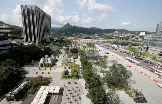 ‘도심숲’을 표방하며 녹지를 늘린 것도 인상적이었다. 가로수와 비슷할 정도로 키 큰 나무 300그루를 곳곳에 심어 고개를 어디로 돌리든 나무가 눈에 들어왔다. 서울시 관계자는 “광장에 70여 종, 5000여 그루의 수목을 심었다”며 “녹지 면적(9367m²)만 광장 전체의 4분의 1을 차지한다”고 설명했다. 세종문화회관 앞 ‘샘물탁자’와 ‘모두의 식탁’ 등 음식을 나눠 먹으며 쉴 수 있는 넓고 안락한 공간도 조성됐다.