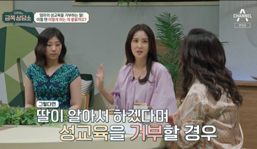 오은영은 "잘못된 인식이 자녀에게 대물린 위험도 높으니 생각해봐야한다"고 조언했다. 장가현은 "딸이 성교육을 거부할 경우 얘기를 꺼내지 말아야할까"라며 고민하자 오은영은 "자녀가 불편해하면 마음을 이해하고 대안을 함께 생각해봐야한다 윤리적 규범은 확실한 규범이 필요하지만 개인적 영역엔 자녀의 생각을 존중해줄 것"이라 조언했다.