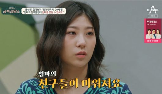 이어 딸은 "요즘 (방송 후) 악플에도 시달리고 있는데 쿨하게 넘기는 느낌, 아무렇지 않아하지만 속으로 곪고 있는 모습이 내 눈에 보인다"며 "계속 병원 다녀, 이혼 후 잠도 못 자고 감정적으로 시달리는데아무렇지 않다고 하는 엄마가 답답하다"고 했다.