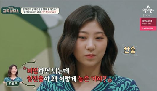 딸 예은은 방에서 콘돔을 발견했다며 말을 잇지 못했다. 이어 "이게 왜? 내가 언제? 싶었다"며 부담스러운 듯한 반응을 보였다. 예은은 "엄마 몰래 집에서 데이트 하지 않는데 방에 숨겨놨어야했나 싶었다"고 말했다. 오은영은 "성에 대해 편하지 만은 않은 소재, 예은이 성인인 만큼 성에대한 대화인데 디테일할 필요는 없는데 너무 구체적으로 성교육을 하는건 아닐까 싶다"며 성교육을 자녀와 나누는 자세는 좋은데적나라하고 자세한 성교육은 성에 대한 인식, 개념, 가치관이 부정적으로 자리잡게 된 것 같다"고 말했다.
