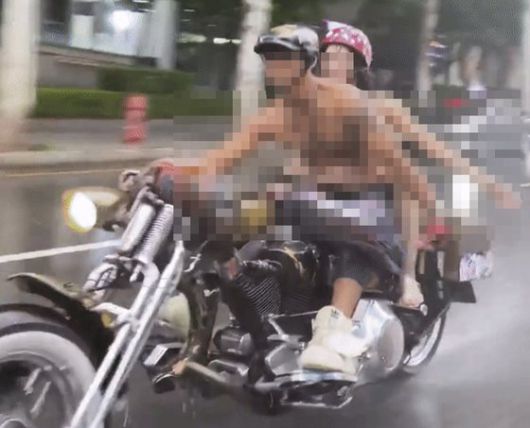 A씨는 지난달 31일 서울 강남 일대에서 남성 유튜버 B씨와 비를 맞으며 오토바이를 탔다. 당시 A씨는 엉덩이 등이 노출되는 수영복을 착용했고 B씨는 상의를 입지 않은 상태였다.