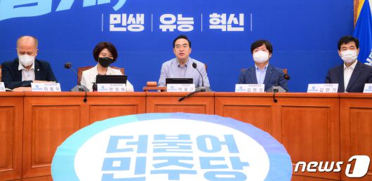 (서울=뉴스1) 유승관 기자 = 박홍근 더불어민주당 원내대표가 8일 서울 여의도 국회에서 열린 비상대책위원회의에서 모두 발언을 하고 있다. (공동취재) 2022.8.8/뉴스1