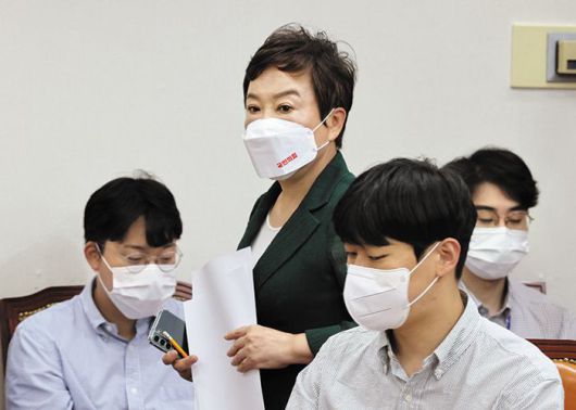 국민의힘 정미경 최고위원이 8일 오전 사퇴 기자회견을 위해 입장하고 있다. 이날 정 위원은 이준석 대표를 겨냥해 “여기서 이 대표가 조금 더 나아가면 당이 더 혼란스럽고 위험해진다. 이 대표는 멈춰야 한다”고 했다. /국회사진기자단 |