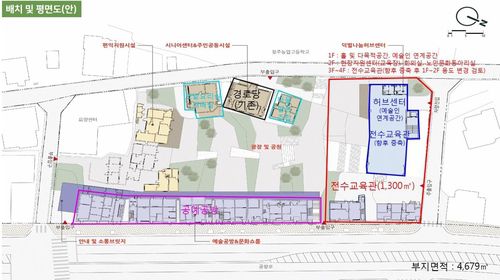 무형문화재 전수교육관 배치 및 평면도 |