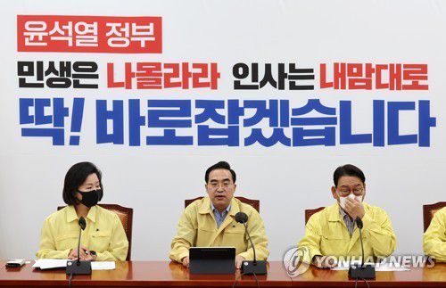 (서울=연합뉴스) 고동욱 박형빈 기자 = 더불어민주당은 9일 중부지방에 내린 기록적인 폭우와 관련해 윤석열 정부가 '재난 컨트롤타워'의 역할을 충실히 하지 못하고 있다며 범정부적 대응을 촉구했다.
