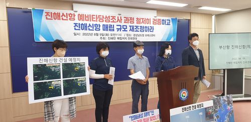 (창원=연합뉴스) 박정헌 기자 = 시민단체가 진해신항의 예비타당성조사(이하 예타) 통과 과정을 검증하고 사업 매립 규모를 재조정할 것을 촉구하고 나섰다.