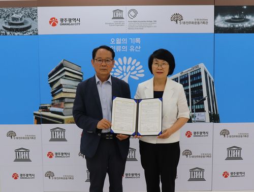 (광주=연합뉴스) 손상원 기자 = 5·18 민주화운동기록관(5·18 기록관)과 사단법인 들불열사기념사업회는 9일 5·18 기록관 세미나실에서 기록물 제공 협약식을 열었다.