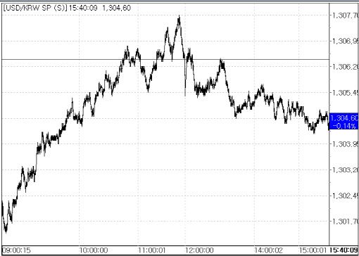 9일 서울외국환중개에 따르면 이날 환율은 전 거래일 종가(1306.4원) 대비 1.8원 하락한 1304.6원에 마감했다. 전날 8원 이상 오른 뒤 하루 만의 하락 반전이나 낙폭은 2원 이내로 제한됐다. 오전 중 1301.30원까지 하락하기도 했으나 하단에서 결제 수요가 환율 낙폭을 빠르게 줄여가며 정오께엔 1307.6원으로 상승 반전하기도 했다. 이후 다시 하락하며 1300원대 초중반에서 마감했다.