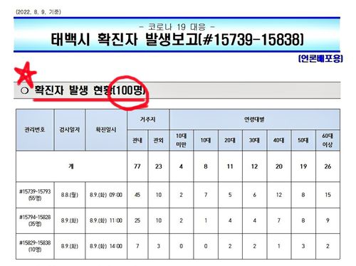 태백시 확진자 발생보고 |