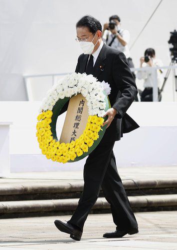 (나가사키 교도=연합뉴스) 2차 세계대전 중 미국이 일본 나가사키에 원자폭탄을 투하한 지 77년이 되는 9일 나가사키시 평화공원에서 열린 원폭 희생자 위령제 및 평화 기원식에서 기시다 후미오 총리가 헌화하고 있다. 2022.8.9 [재판매 및 DB 금지] sungjinpark@yna.co.kr ▶제보는 카카오톡 okjebo▶연합뉴스 앱 지금 바로 다운받기~▶네이버 연합뉴스 채널 구독하기 <저작권자(c)연합뉴스. 무단전재-재배포금지.>