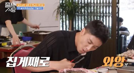 이어 식당에 입성한 성훈은 불만이 가득 쌓인듯 시종일관 어두운 표정으로 ‘폭풍 먹방(먹는 방송)’을 이어갔다.