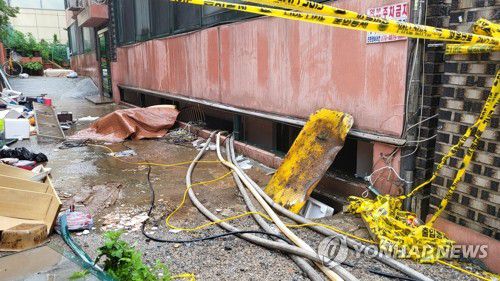 침수로 고립돼 일가족 3명 사망한 관악구 한 빌라 앞 |