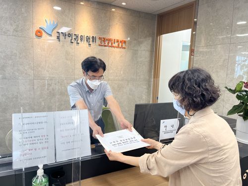 국가인권위원회에 진정서를 제출하고 있는 김숙경 군성폭력상담소장 |