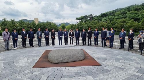 대구·경북지역 민주당 위원장들은 10일 경남 김해 봉하마을 고 노무현 전 대통령 묘역을 참배 후 밝힌 성명에서 "정치를 살려야 한다"면서 "중대선거구제 혹은 석패율제·권역별 비례대표제 등 선거법을 개정해야 한다"고 했다.