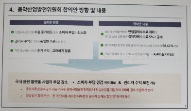 김현준 문체부 저작권산업과 과장은 “이번 이슈가 음악업계에 미치는 영향이 큰 만큼 충분한 대화를 통해서 공론화를 할 필요가 있다고 생각한다”며 “그럼에도 불구하고 원만한 협의가 되지 않으면 다양한 적극적 수단도 검토하고 있으니 많은 의견을 달라”고 밝혔다.