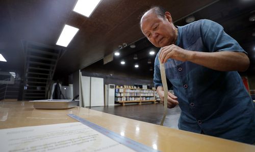 그는 "5년 정도는 풀을 쑤고 칼을 가는 심부름만 하면서 작업 과정을 눈으로 익혔지만 의뢰받은 작품에는 손도 대지 못했다"고 당시를 회상했다.
