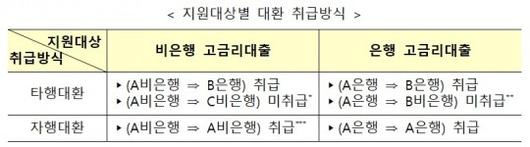 금융위는 이번 프로그램을 통해 금리 7% 이상 대출 약 22조원 규모, 49만건 중 약 40%인 20만명의 차주가 수혜를 볼 것으로 보고 있다. 신청은 은행과 일부 비은행권을 통해 다음달 말부터 진행된다. 은행에서는 과거 비은행에서 받은 고금리 대출과 해당 은행(자체 고객) 및 타 은행에서 받은 고금리 대출까지 대환을 신청할 수 있다. 금융위는 접수과정에서 혼잡 방지를 위해 시행 초기에는 비대면·대면 모두 사업자번호 끝자리를 기준으로 신청 시점을 5부제로 분산할 계획이다.