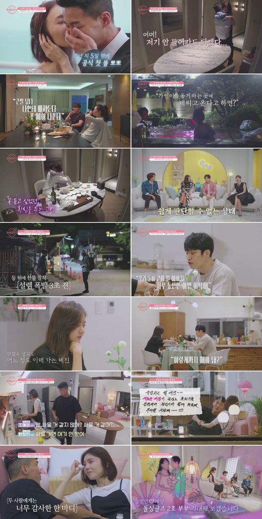 신혼여행을 통해 ‘찐 커플’이 된 한정민X조예영은 한정민이 거주 중인 창원에서 동거 생활을 시작했다. 재회 직후부터 동거 하우스로 향하는 길까지 입맞춤이 난무한 가운데, 두 사람은 늦은 저녁 식사를 함께했다. 한정민의 입술에 묻은 밥풀까지 조예영이 떼서 먹는 달달함 속, 조예영은 자신의 어머니가 직접 쓴 손편지를 한정민에게 보여줬다. ‘새로운 여정이 즐겁고 복되기를 바라며, 정민이와 함께 축복한다’는 내용에, 두 사람은 “돌싱들의 감정을 자극하는 단어”라며 눈물을 흘렸다. 이어 두 사람은 한 침대에 누웠고, 계속되는 ‘뽀뽀 어택’에 한정민이 “스트레스!”라고 포효(?)하며 달콤한 첫날 밤을 보냈다.