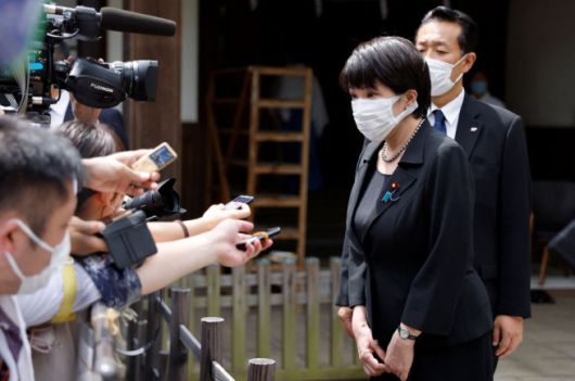 일본 현직 각료들의 패전일 야스쿠니 신사 참배는 2020년과 지난해에 이어 올해도 이어졌다. 다카이치 사나에 경제안전보장 담당상과 아키바 겐야 부흥상은 이날 오전 야스쿠니신사를 직접 방문해 참배했다.