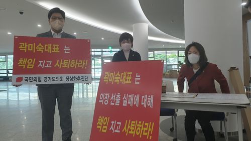 대표의원 사퇴 요구하는 경기도의회 국민의힘 의원들 |