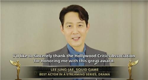 (서울=연합뉴스) 오명언 기자 = 넷플릭스 오리지널 시리즈 '오징어 게임'이 미국 할리우드 비평가 협회(HCA) 시상식에서 2관왕에 올랐다.