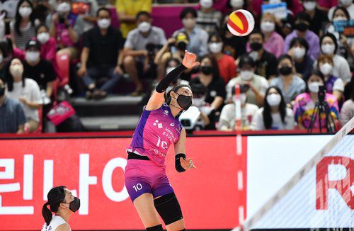 스파이크하는 김연경 |