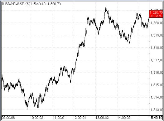 18일 서울외국환중개에 따르면 이날 환율은 전 거래일 종가(1310.3원) 대비 10.4원 오른 1320.7원에 상승 마감했다. 이날 환율은 역외 환율 상승을 따라 4.7원 오른 1315.0원에 시작한 뒤 5원 안팎의 상승폭을 나타내다가 오후로 갈수록 상승폭을 키웠다. 환율이 1320원대에서 마감한 것은 지난달 15일(1326.1원) 이후 약 한 달여만이다. 수급상 네고는 있었으나 당국의 적극적인 개입도 부재했던 것으로 보인다.