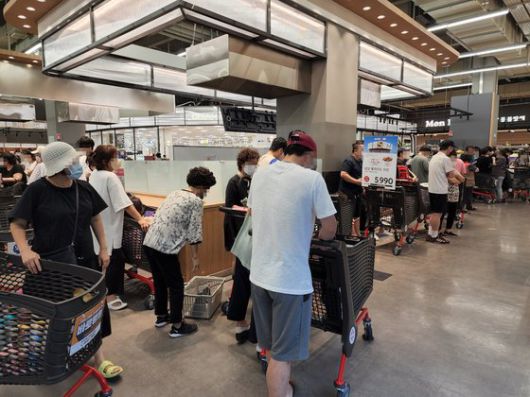 말복이던 지난 15일 홈플러스 한 매장에서 '당당치킨'을 사기 위해 고객들이 줄을 서고 있다. [사진 홈플러스] |