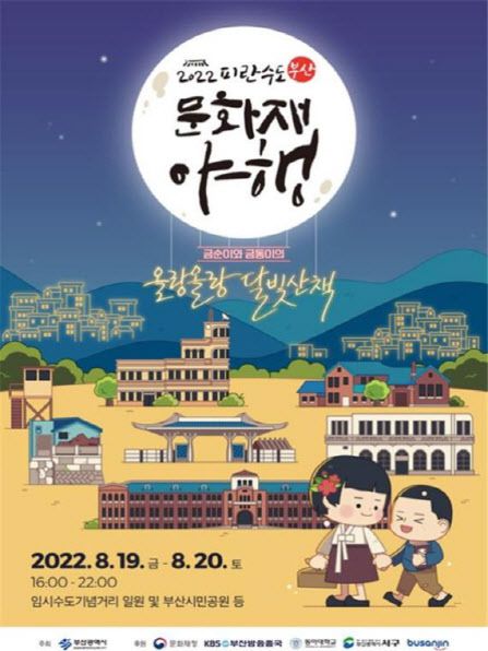 올해 축제는 피란시절 역경을 딛고 꿋꿋하게 살아온 캐릭터 ‘금순이’가 피란하며 잃어버린 동생 ‘금동이’를 찾아가는 이야기로 구성했다. 19일 오후 4시에 부산 서구 임시수도기념거리 일대에서 문화재를 거닐며 야간경관을 즐기는 ‘올랑올랑 달빛 이야기’를 진행한다. 같은 날 오후 7시 30분에는 동아대 부민캠퍼스에서 스윙댄스 레트로 공연이 펼쳐진다.