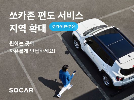 쏘카 측은 “서울을 포함한 대부분의 수도권 지역에 천안시, 울산시, 창원시, 김해시, 거제시 등이 이번에 추가로 포함됐다”며 “차량을 반납한 뒤 발생하는 주차 비용은 쏘카가 전액 부담한다”고 했다.