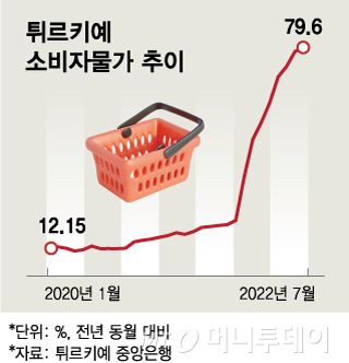 에르도안 대통령의 주장과 달리 튀르키예의 물가상승률은 끝없이 오르며 경제성장률을 계속해서 압박하고 있다. TCMB 발표에 따르면 지난 7월 소비자물가지수(CPI)는 전년 동기 대비 79.6% 상승해, 6월에 기록했던 1998년 1월(84.64%) 이후 24년 만에 최고치를 경신했다. 6월 CPI 상승률은 78.6%다.튀르키예 중앙은행은 공식적으로 올해 말까지 인플레이션 목표치를 5%로 잡은 상태다.