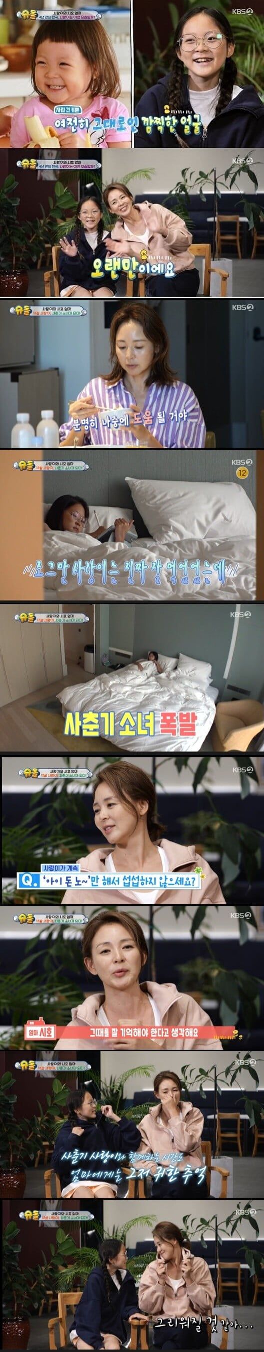 식사를 다 마치지도 않은 채 사랑이는 침대로 쏙 가버렸고 엄마 시호는 "요즘에 너무 안 먹어서 걱정이다"라고 잔소리를 늘어놨다. 사랑이는 침대에서 묵묵히 수학 숙제를 하고 있었고 "엄마가 말 안해도 잘 한다"라고 말하며 의젓한 모습을 보였다.