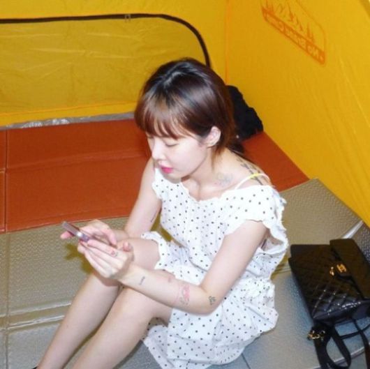 이어 공개된 사진은 텐트 안에서 원피스를 입은 채 다소곳한 자태로 앉아있는 모습이다. 마치 싸이의 히트곡 ‘강남스타일’의 “정숙해 보이지만 놀 땐 노는 여자”, “가렸지만 웬만한 노출보다 야한 여자”라는 가사가 떠올리는 모습이다.