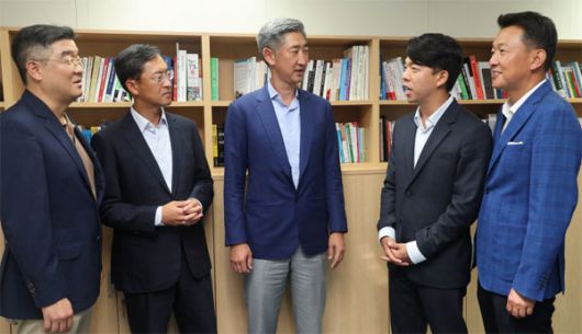 매일경제가 10월 12일 뉴욕 월가의 한국계 진출을 지원하기 위한 `K-월스트리트 플랫폼`을 출범시킨다. 출범식을 앞두고 지난 18일 한국계 금융인들이 좌담회를 했다. 왼쪽부터 신종석 KFS 한국고문(휴니드테크놀러지스 대표), 마이크 주 뱅크오브아메리카 투자은행 부문 최고운영책임자(COO), 샌더 허 찰스뱅크캐피털파트너스 파트너, 마크 김 앵커리지캐피털그룹 이사, 신재명 KFS 한국고문(한대 사장). [이충우 기자] |
