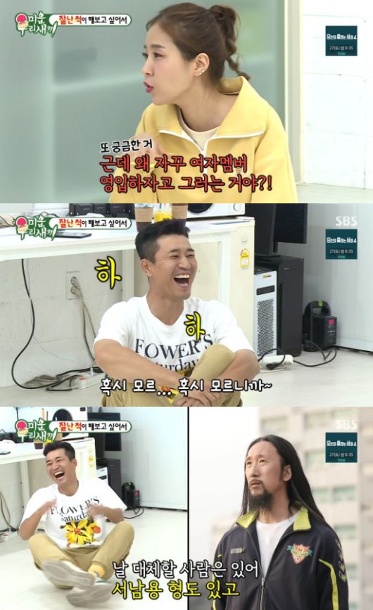 그뿐만 아니라 신지는 "왜 멤버 하나 더 영입하자고 하는 거냐. 찢어지고 싶은 거냐"라며 의아해했고, 빽가는 "혹시라도 네가 결혼하면"이라며 거들었다.
